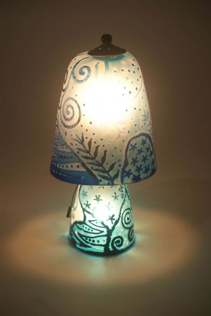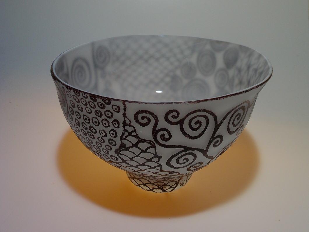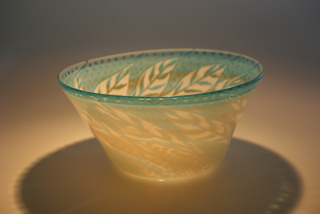 現在は明日香村で「明日香むらの吹きガラス」と名付けた工房で作品制作に向き合う。美しくも優しい作品は、笑みがこぼれる上質のユーモアも含み見る者を魅了する。