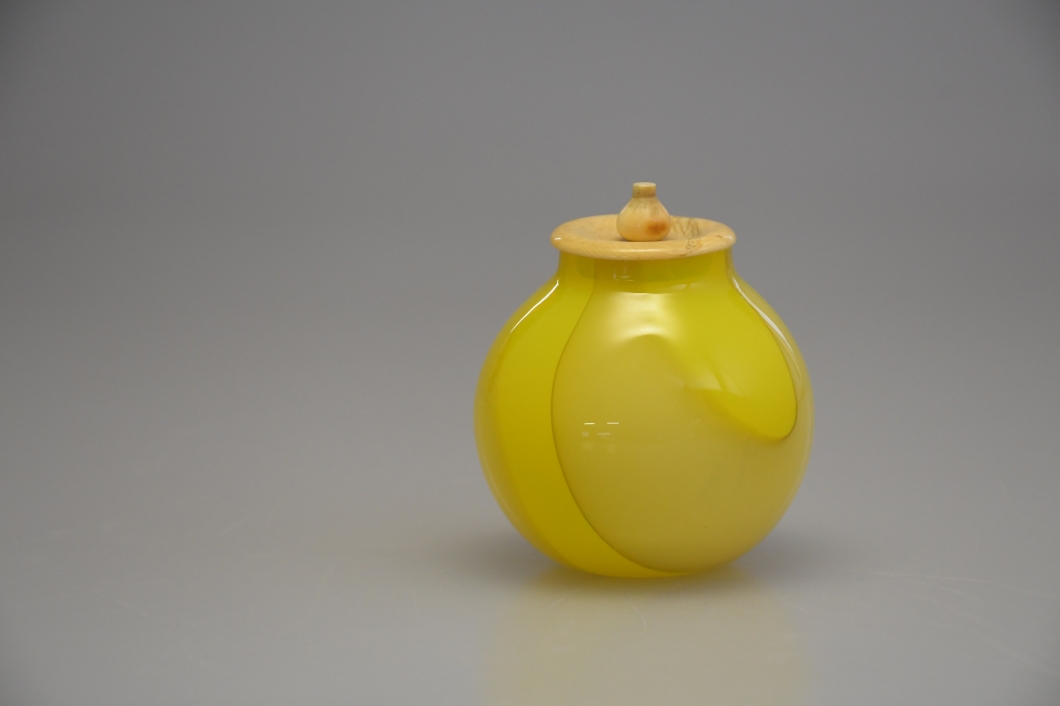 「吹きガラスは、ちゃんと扱わないと、ちゃんと応えてくれません。吹いているその一瞬、ガラスに生命を吹き込むのです。すると、ガラスは作家の意図を受け取って、このような形になりたいというかのように形になっていくのです」。
