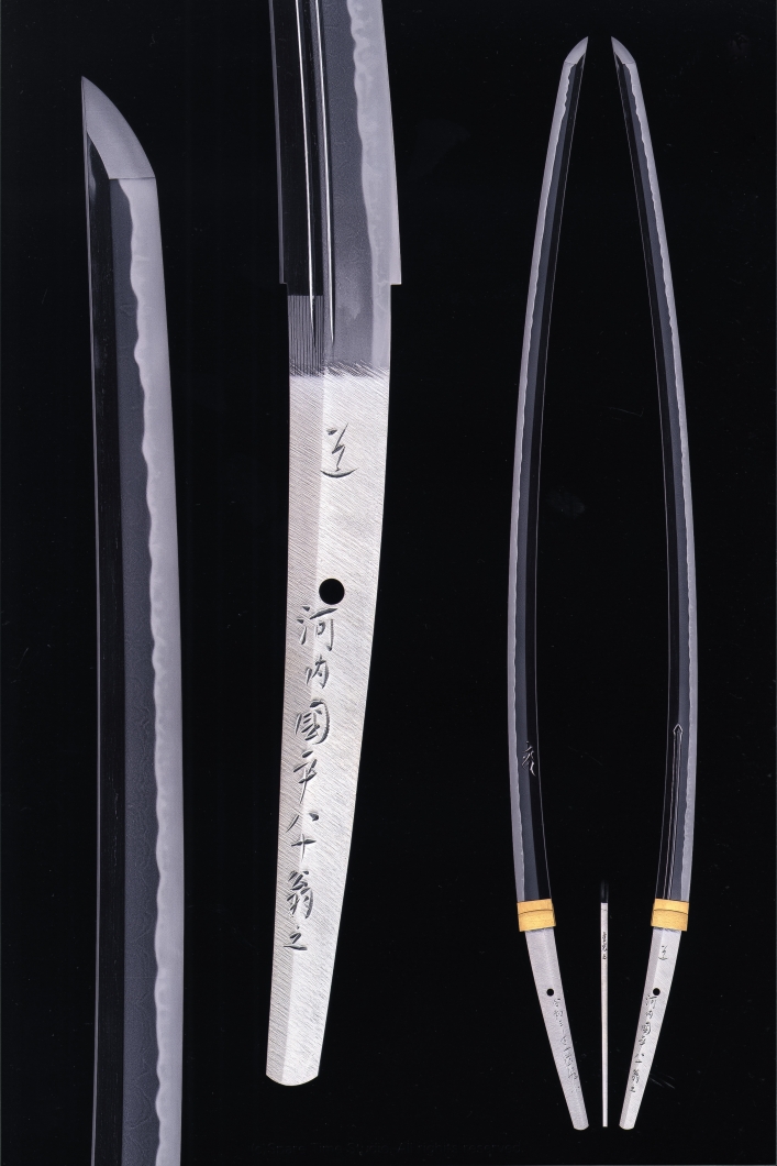 河内國平氏の仕事は、ものづくりの原点を垣間見せてくれる。人間国宝の宮入昭平氏に相州伝を、同隅谷正峯氏に備州伝を習い、数々の賞を受賞後、無鑑査認定を受け、平成26年には刀剣界の最高峰とされる正宗賞を受賞した。輝かしい経歴をもちながらも、工房の國平氏はいたって清廉、質素である。