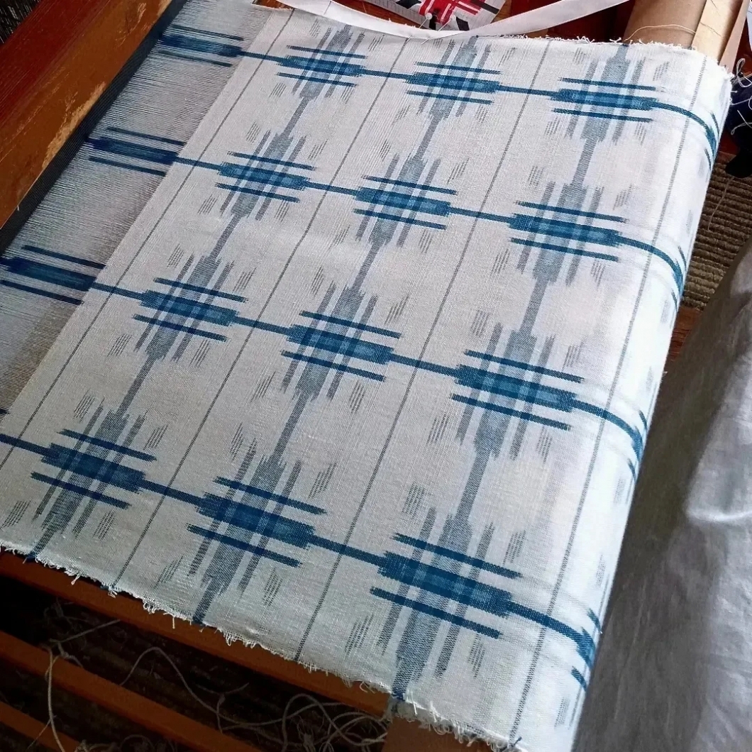 服飾専門学校時代に染織に興味を持ち、愛媛県の西予市野村シルク博物館で2年間絹織の基礎から染織の工程を学び、京都西陣の吉田手織工房でも内弟子として様々な織物技法を学んだ。そして大和絣と書籍を通じて運命の出会い。シンプルな美しさが今はついえてしまっていることに衝撃を受けた。その後奈良県民族博物館で大和絣の研究をする学芸員・横山浩子氏に出会い復元の道へ。しかし織り機も道具も現存するものがほとんどなく、苦労と工夫の連続だったそう。2020年、大和郡山市町家物語館で初個展。「復元」という言葉に恥じないと自信がついた。これから自分流のアレンジを加え、再び大和絣が生活を彩ることを希求する。