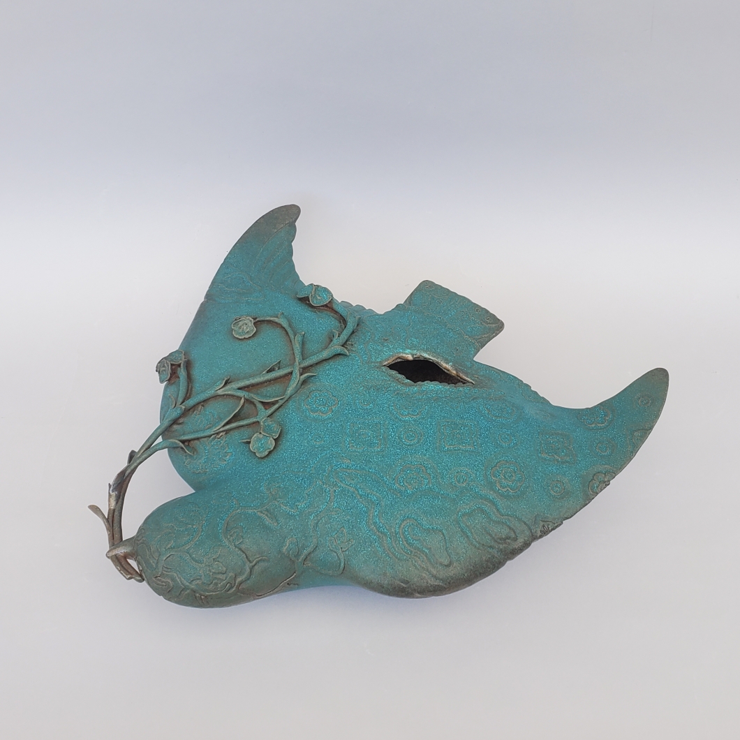 作品は成形を得意としており、彫りを装飾としてほどこす。自然をモチーフとしたものが多く、それは工房をとりかこむ自然の風景に由来する。鳥、山、川。外を見たらインスピレーションがわく。目指すのは、自分の作品が何百年後かに、面白いものを作っていた人がその時代にいたんだなと思われること。いつも窯出しの作品初お目見えの時が一番楽しみと笑う。