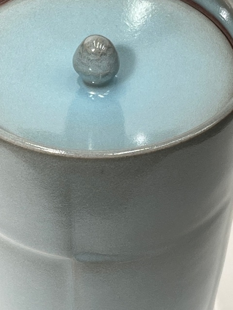 ずっと土もので青瓷(せいじ)を作ってきた。赤土から鉄分を引き出し、釉薬のブルーの鮮やかさを引き立てる。くすり掛けは非常に大事な工程で、釉薬の厚みが色の深みにつながる。薄すぎると青が出ず、厚すぎると流れる。最も際どい作業だ。