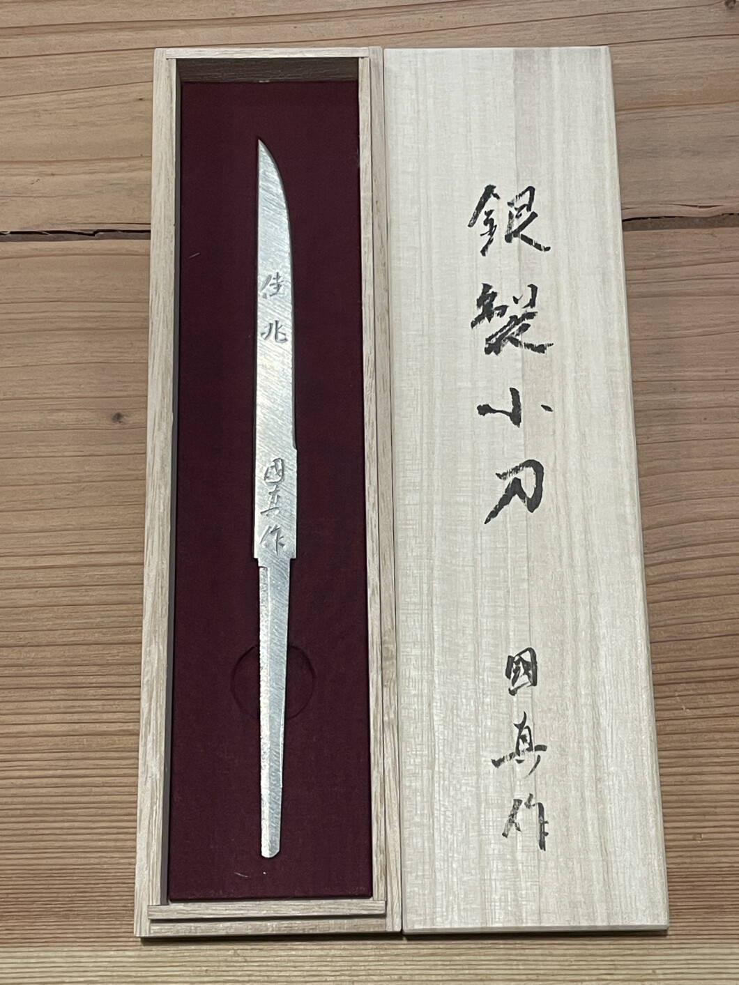 チャリティーオークション 【刀剣】金田國真氏「銀製小刀 銘:佳兆 國真作(かちょう くにざねさく)
