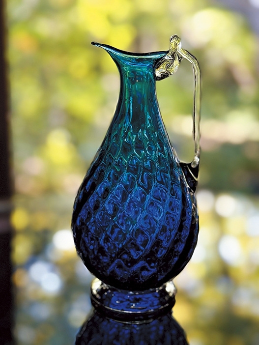 「吹きガラスは、ちゃんと扱わないと、ちゃんと応えてくれません。吹いているその一瞬、ガラスに生命を吹き込むのです。すると、ガラスは作家の意図を受け取って、このような形になりたいというかのように形になっていくのです」。