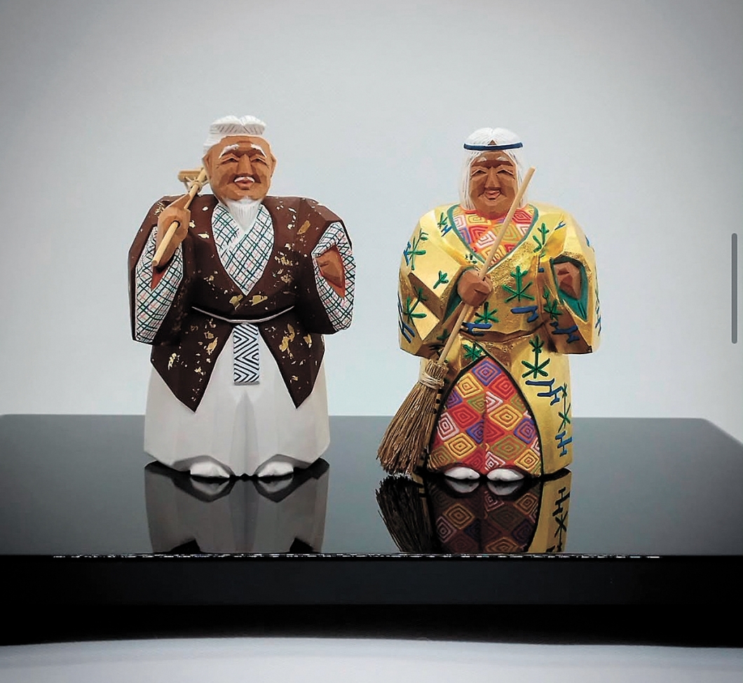 一刀彫は何故彫り数少なく造形するのか聞いてみた。守田氏曰く、神道の思想で、人の手が入ることにより手垢をつけない様、少ない手数で形づくることを良しとする神聖なものだからだそうだ。その起源は平安時代、春日若宮おん祭を飾った彩色人形で、その頃から伝統は変わらない、と話す。材料高騰など近年も厳しい状況が続くが、一刀彫が後世も続いていくため、この道で皆の生活が成り立つよう自分も盛り立てていきたい、と話す。